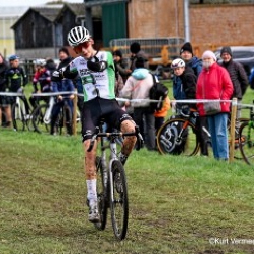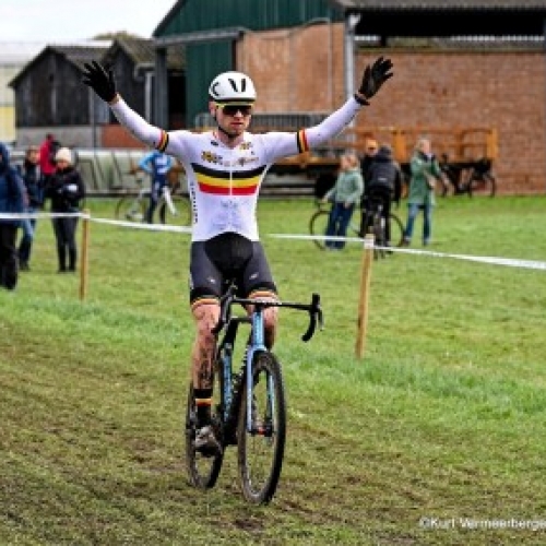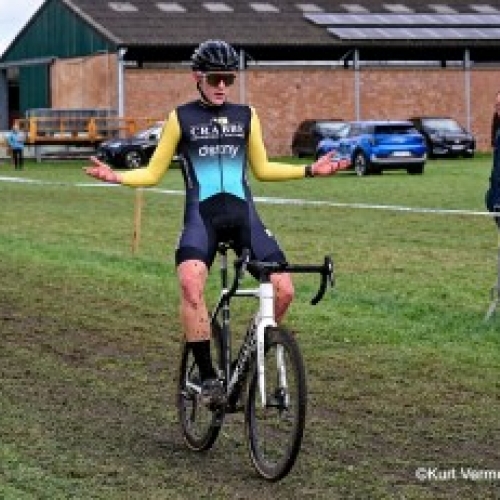 Gianni Siebens, Belgisch kampioen, won de wedstrijd bij de elite 3 in Herenthout. Hij bleef...