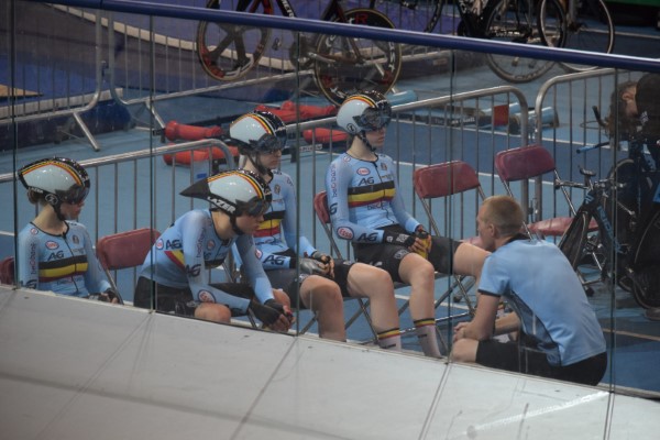 Op vrijdag wordt gestart met de ploegenachtervolging waarin Marith als meest explosieve van de ploeg de start neemt met in haar zog Katrijn, Sara en Julie. Dit kwartet trainde nog maar 1x samen en rijdt zijn wedstrijddebuut. In de kwalificatie gaan ze sterk van start, naar het einde toe krijgen ze de Deense ploeg in het vizier wat extra energie geeft, dan worden wel enkele technische foutjes gemaakt maar ze finishen mooi in 4'45,011", meer dan bevredigend en de tweede tijd van de 9 deelnemende ploegen waardoor ze de finale mogen rijden tegen topteam GBR dat zich plaatst met 4'41,207". Onze dames doen zo beter dan teams als Duitsland en Frankrijk. In de finale rijden ze technisch beter, maar net iets trager. De Britten sluipen dichterbij en gaan in de laatste kilometer over de Belgische ploeg, daardoor kan er even niet afgelost worden en verliezen ze nog enkele seconden extra. Eens de Britten over hen stoomt de ploeg weer door naar een eindtijd van 4'48,860”, om de tijd wordt niet getreurd, de tweede plaats is een feit en een mooie opsteker, er is nog 6 maanden om progressie te maken richting EK in juli.