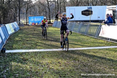 In de dameswedstrijden in Gierle waren het vooral de Belgische toppers die het laken naar zich toe trokken. Bij de nieuwelingen was het Belgisch kampioene Lentel Huys die de overwinning veiligstelde.