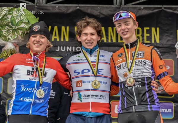 "Ik was vandaag eigenlijk met weinig verwachtingen naar Geraardsbergen afgezakt. Het doel was vooral om zonder kleerscheuren de finish te halen. Net na de eerste keer Bosberg viel het stil in het peloton en ben ik op kousenvoeten kunnen ontsnappen. Ik kreeg 6 metgezellen mee. Op de tweede keer De Muur trok een Deen door en was ik de enigste die kon volgen. We werkte goed samen en we konden onze voorsprong goed uitbouwen. Op 15 km van het einde kwam de de Nederlandse kampioen nog aansluiten. Iets later reed de Deen nog lek. We reden met twee naar de meet en wisten niet dat we voor het podium gingen sprinten. We waren beide verrast na de finish. In de spurt zat er niet veel meer op en ik ben zo derde geworden. Dit geeft veel vertrouwen voor de volgende koersen.": Vincent, onze beste Belg.