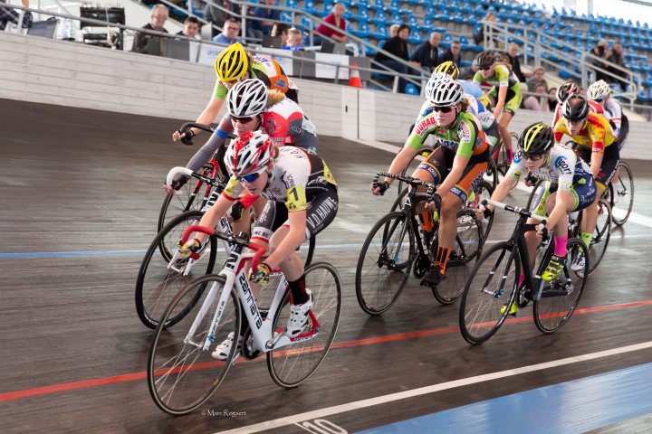 Eerste komt de scratch over 20 ronden. Buiten enkele schuchtere aanvalspogingen blijft het een zeer rustige wedstrijd, niemand durft het aan om het vuur echt aan de lont te steken waardoor een massasprint onvermijdelijk is. Enkele ronden voor het einde trekt juniore Noa Selosse alle registers open, van de nieuwelingen is Katrijn De Clercq de kwiekste, zij duikt mooi in het wiel van de drie jaar oudere Selosse en wordt gevolgd door Vromanne en Scavone. In die volgorde komen ze over de streep. Bij de juniores is Anthonissen tweede en Theunis derde.