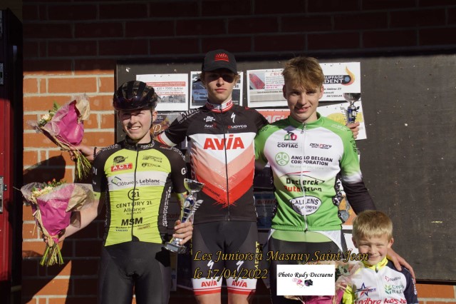 Met juist 20 junioren werd er gestart in het Waalse Masnuy Saint Jean.Na een slechte seizoensstart kon Milan Feys solo naar zijn eerste zege van het seizoen rijden.