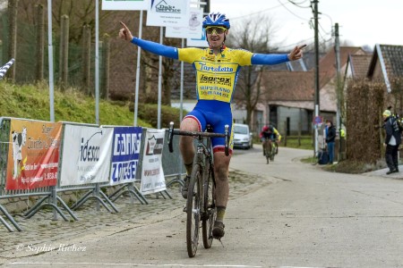 Jenko Bonne was gisteren de overwinnaar in Balegem. Jenko reed er een knappe solo wedstrijd en kon zo de eerste zege van het seizoen op zijn palmares zetten.