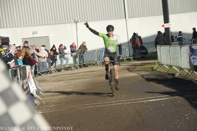 Finn Notebaert heeft de laatste cross van het jaar in Hamme op zijn naam geschreven. Voor de tweedejaars nieuweling was het meteen een bijzondere zege, want het was ook zijn afscheidscross in het truitje van WOOP. Vanaf 1 januari verdedigt Notebaert de kleuren van de R.EV Brussels Cycling Academy.