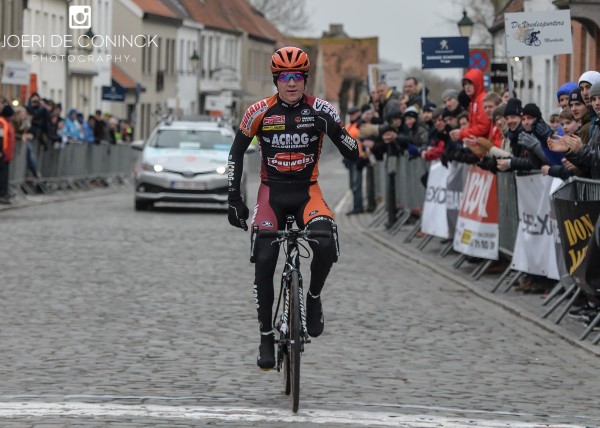 "Een mini Parijs-Roubaix waar ik aan de start kwam met een speciale Roubaix fiets die ik van Quick-Step gekregen heb om mee te koersen tot en met Parijs-Roubaix. Het was een koude dag met heel veel wind. We waren verwittigd voor de koers en moesten attent zijn. Ik heb de vlucht gemist die na een waaier wegreed. Dan heb ik met mijn goeie maat Ilan Van Wilder het gat van 50 seconden op de koplopers kunnen dichtrijden en de koers was gereden. Er waren in de kopgroep veel te veel slepers naar mijn zin en die wou ik er zo snel mogelijk af. Met succes. We bleven met 8 van de12 man over en daarna ging ik nog eens aan met Wessel Krul. We gingen de plaatselijke ronde dus met 2 in. Nog 25km te gaan. Wessel zei me dat hij redelijk kapot zat en moest lossen op de kasseistrook. Dan maar solo en met succes.. Uiteindelijk aangekomen met 3’17” voorsprong op de 2e. Ik ben zeer blij met deze overwinning na mijn val van vorige week. Ik had iets goed te maken! Volgende week: Gent-Wevelgem!"