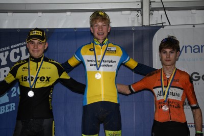 Op hetzelfde parcours werd ook gestreden om de provinciale titel bij de tweedejaars nieuwelingen. Die ging naar Boyan Vandenbroucke (Acrog–Tormans), die zo zijn tweede West-Vlaamse trui in het veldrijden verovert.