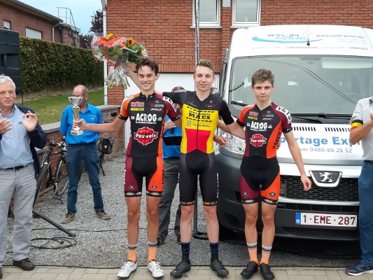 Belgisch kampioen Stijn Degeest won gisteren in zijn eigen Hoeleden de wedstrijd voor nieuwelingen. In een sprint met 6 kon de renner van Maes CT Glabbeek het afmaken. Het is voor Stijn zijn tweede zege.
