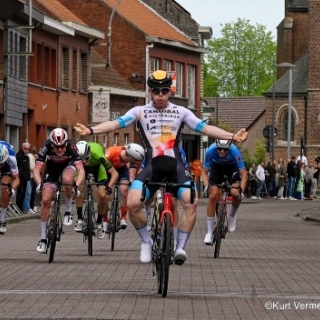 Bij de tweedejaars nieuwelingen zagen we een mooie strijd tussen Antwerps kampioen Maxime Smits en de Brit Freddie Winkley. Het ging een lange tijd gelijk op tot in de laatste ronde. Toen kon de Brit afstand nemen van Maxime en zo solo over de streep komen. Maxime werd nog knap tweede en werd zo Vlaams kampioen.