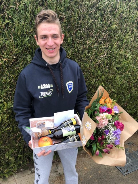 "Door de klim van 3.5km was het een echte uitputtingsslag. Ik had een goed gevoel en kon dan ook aanvallend koersen. Met nog 2 ronden te gaan bleven we over met een groepje van 13 renners (van de 129 starters =Junioren en beloften samen). In de sprint kon ik mijn 2de overwinning als junior behalen een 10de plaats bij de beloften.":aldus Yarno.