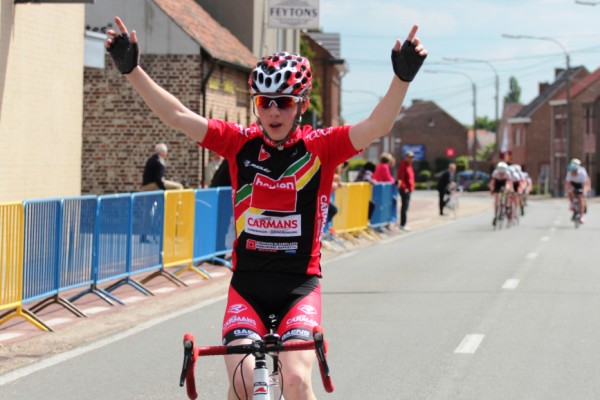 <p>Bjorn Vandebeek (14-jarige aspirant) is gisteren voor het derde jaar op rij kampioen van Limburg geworden. Hij is na 3 ronde weggereden en heeft iedereen gedubbeld behalve de 2de. Er waren wel maar 10 deelnemers, de andere gaven forfait. Het is zijn achtste titel bij de aspiranten: piste, wegrit en tijdrijden 12 en 13 jaar. Dit jaar voorlopig tijdrijden en wegrit. De piste is voor later dit jaar.</p>