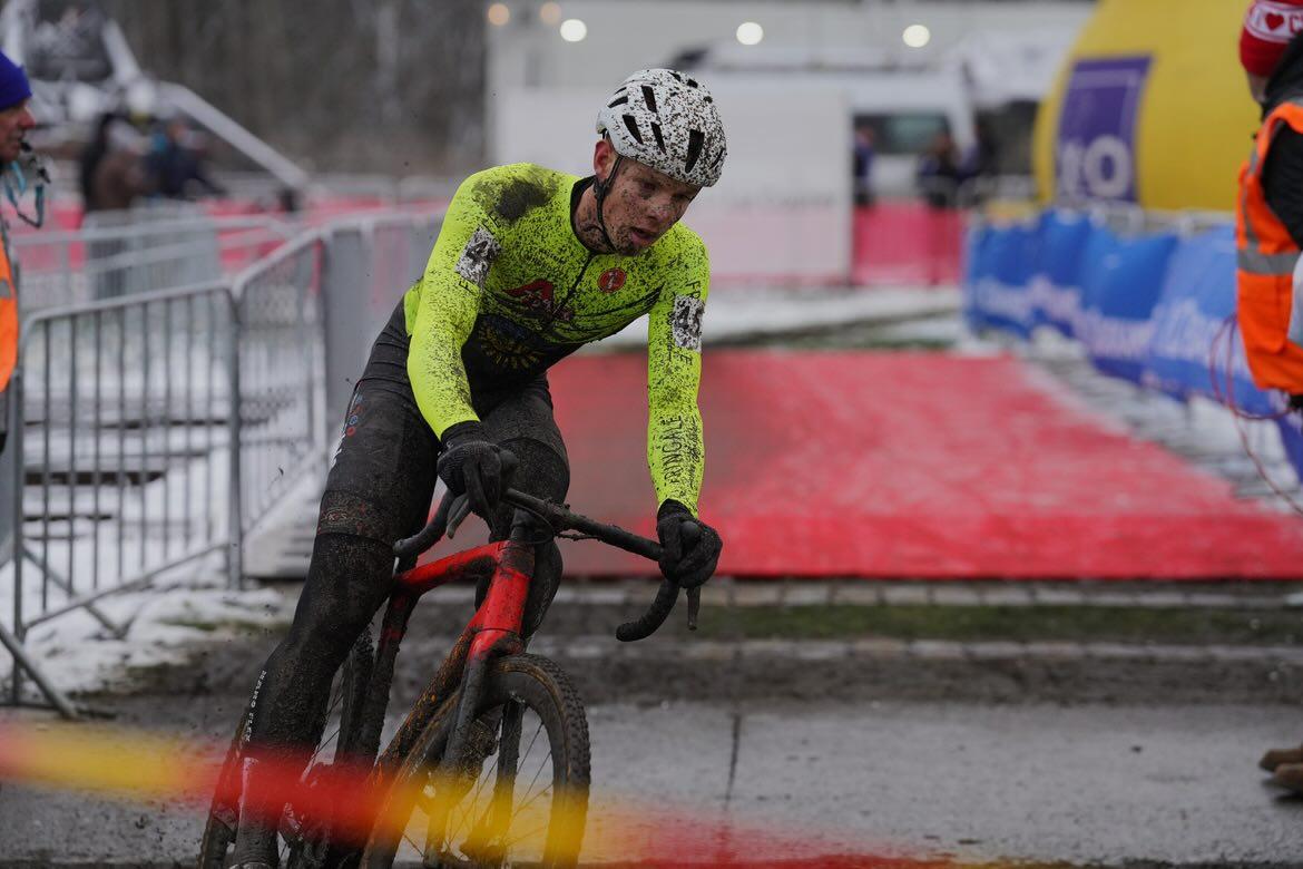 Bram Sprangers van het Atar – Van Gorp Projects CT heeft vandaag een sterke prestatie neergezet op het Belgisch kampioenschap veldrijden voor beloften. De derdejaars belofte streed mee voor de Belgische driekleur en wist zich uiteindelijk knap als negende te klasseren. Opvallend daarbij: Sprangers liet zich omringen door renners van de grote en gevestigde crossploegen.