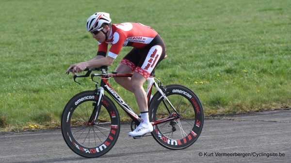 "Vandaag stond de koers in Retie op het programma, er moesten 20 ronden worden afgelegd van bijna 4 km. Meteen van bij de start ging ploegmaat Pieter Van de Water in de aanval samen met Robin Dekkers. 2 ronden later maakte ik alleen de sprong naar voor en kwam zo bij hen aansluiten. Na enkele ronden moest Robin lossen en zo kwamen we met 2 aan de leiding. We draaiden meteen goed rond maar onze voorsprong werd nooit groter dan 15 seconden. Half koers kwamen er 3 renners aansluiten: Jordi Meeus, Brent Van Tilborg en Thomas Verheyen. Het draaide goed rond en zo was de veer van het peloton gebroken waar onze ploegmaten prima werk leverden. Zo liep onze voorsprong stelselmatig uit en gingen we met 5 de laatste ronde in. Na een versnelling van Thomas zag ik mijn kans en nam deze dan ook. Ik sloeg meteen een gat en was vertrokken. Zo haalde ik mijn eerste overwinning van het jaar! Ploegmaat Pieter werd nog net op de meet voorbij gesneld door Jordi voor de 2de plaats. De pelotonspurt werd gewonnen door Wouter Van Ende en zo reden we met de ploeg weer mooie resultaten bij elkaar.": aldus Daan Noyens.