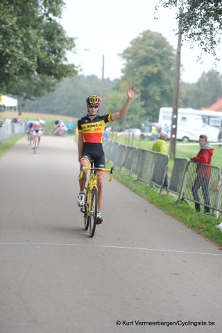 Bij de juniores zagen we een snelle start vanaf de eerste ronde van Belgisch kampioen Yannick Peeters. Yannick kreeg heel even het gezelschap van Thomas Joseph maar Yannick kon hem even snel achter zich laten. Achter de 2 zagen we een ijzersterke Gianni Van Donink die mooi opschoof tijdens de wedstrijd. Uiteindelijk kwam Gianni samen met Joseph en kon hem tijdens de spurt voor de 2e plaats achter zich houden.