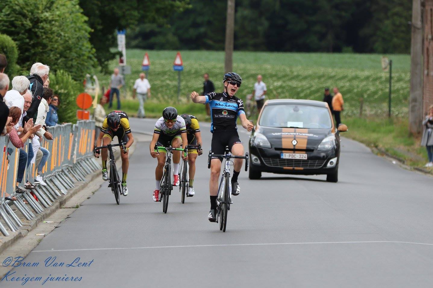 "Vanaf de tweede ronde reden we weg met vier maar 1 iemand moest lossen en er kwam nog 1 iemand opnieuw bij. We draaiden zeer goed rond en bleven de eerste ronden op 30 seconden hangen maar na half koers was het peloton volledig in stukken en hadden we meer of 2 minuten. De laatste 2 ronden werd er al wat gekeken naar elkaar. De laatste ronde probeerde ik een paar keer weg te springen maar zonder succes. Op 300 m van de streep probeerde ik het nogmaals en kon het volhouden."