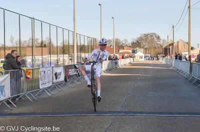 Vlaams kampioen bij de junioren Flynn Delanghe heeft zondag zijn favorietenrol met verve waargemaakt in de thuiscross van Bekkevoort. Voor een talrijk opgekomen publiek soleerde de renner van Van Moer Logistics Cycling Team naar een overtuigende overwinning. Aan de finish had hij een comfortabele voorsprong van 20 seconden op Joren Celen.