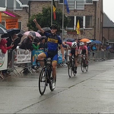 "Er stonden 104 vertrekkers aan de start te Lierde voor een wedstrijd van 88km op een golvend parcours. In de 6e van de 10 af te leggen ronden kon ik met 3 andere renners een kloof slaan die al snel opliep tot een kleine minuut. We draaiden goed rond waardoor de voorsprong geruststellend bleef. In de laatste ronde kwamen er nog enkele aanvallen maar uiteindelijk gingen we met 4 naar de meet. In de gietende regen was ik de snelste en kon zo mijn 2e seizoenszege behalen!"