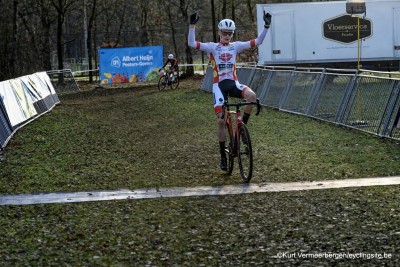 Daelmans startte rustig maar vond al snel zijn ritme. “De wedstrijd startte redelijk vlot, ik vond niet direct mijn pedaal maar kon wel rond de top 5 de wedstrijd aanvatten. Al snel reden we met meerdere renners weg van de rest. Drie kwart van de cross hing ik in laatste positie van die groep op een aantal seconden. Het gevoel was redelijk, maar de benen voelden wat slap aan. Tegen het einde ben ik er doorgekomen en naar de kopgroep gereden. Op drie ronden van het einde kreeg Arthur een gaatje waardoor het tempo de lucht in ging. In de voorlaatste ronde reed ik alleen naar Arthur toe en samen gingen we de laatste ronde in. Op een van de laatste rechte stukken trok Arthur door, maar in het technische gedeelte kon ik er terug naartoe rijden. Op die manier kon ik als eerste indraaien in de beslissende bocht en wist ik dat de overwinning binnen was. Blij met mijn eerste zege en de eerste voor de nieuwe ploeg,” aldus Daelmans.