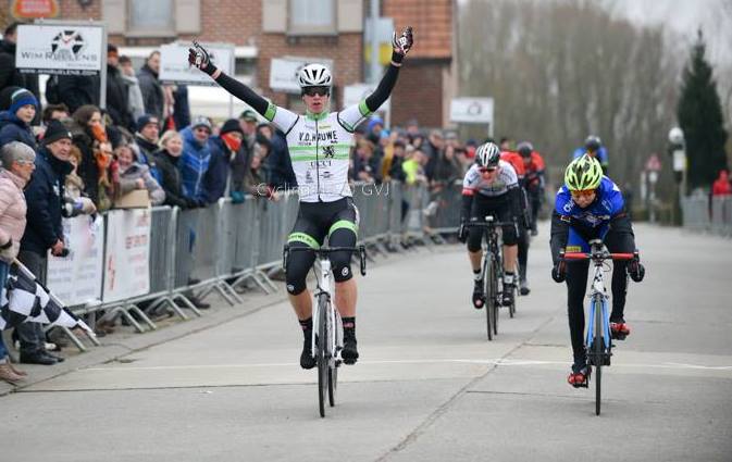 "Het was heel koud en het was de kunst om met zo weinig mogelijk kledij warm te blijven. In het begin van de koers heb ik een aantal keer geprobeerd om weg te geraken maar tevergeefs. Rond km 40 vertrekken 5 man. Dit was de beslissende groep waar ik achteraf ook alleen nog naartoe reed. De samenwerking moest heel goed blijven want we kregen continu druk van achteruit. In de sprint was ik vrij zeker dus heb ik het daarop gewacht. Heel blij met deze overwinning ondanks het koude weer."