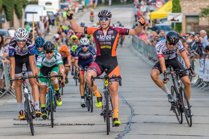 Luca Van Hout heeft zijn eerste zege bij de nieuwelingen binnen en wat voor één. Luca won de beker van België wedstrijd in Nederhasselt, De GP Tania De Jonge.