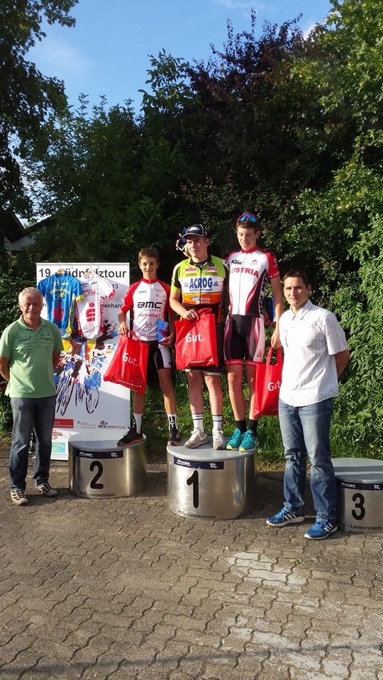 Luca Van Hout (ASP/14j) heeft vandaag de tijdrit gewonnen in de Suedpfalz tour, Duitsland. Hierdoor is Luca leider en moet hij morgen de leiderstrui verdedigen. Luca legde het 5.6km lange parcours af op 8 minuten. De tweede volgende op 1,2 seconden en de derde op 7 seconden.
