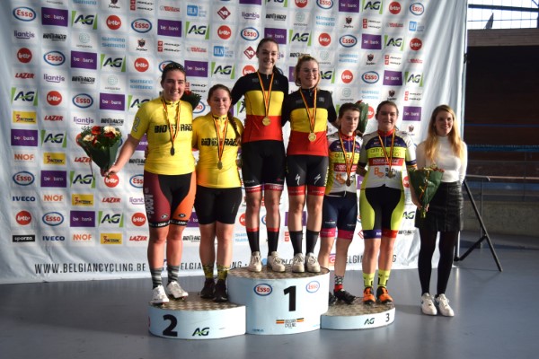 Door allerlei omstandigheden konden slechts 6 dames deelnemen aan het BK Madison. Dat zijn dus 3 koppels, normaal te weinig voor het toekennen van de titel, maar de pistecommissie is dit jaar wat milder en besluit toch de titel uit te reiken. Hopelijk helpt dit om meer meisjes naar de wielersport te lokken en dan in het bijzonder naar de piste. Topfavorieten zijn Sara Maes en Marith Vanhove, beiden leerlingen aan de Topsportschool, reeds maanden stevig aan het trainen en 2 weken terug nog derde in de internationale meeting in Apeldoorn. Het tweede koppel dat reeds de ganse winter samen rijdt nl. Laura Puype met Ines Van de Paar worden kort voor het BK opgesplitst. Laura rijdt met Margot Rottiers, deze vormen zo een nieuwelingenkoppel, Ines rijdt met Aaike Cools, beiden juniore.