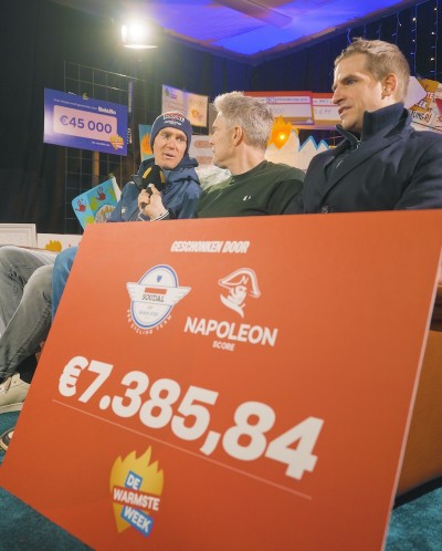 Napoleon en wielerploeg Soudal Quick-Step hebben samen 7.385,84 euro ingezameld voor De Warmste Week. Het bedrag is het resultaat van een fietsactie die renners, supporters en de brede wielergemeenschap samenbracht in de aanloop naar de jaarlijkse solidariteitscampagne van de VRT.