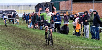 Notebaert wist een beslissende kloof te slaan en hield stand tot aan de meet. Hij mocht zo verdiend het zegegebaar maken na een sterke cross .