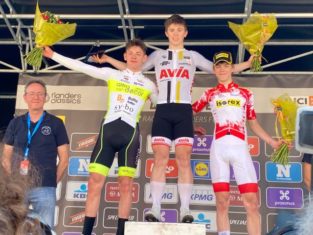 De Katjeskoers, de Gent - Wevelgem voor nieuwelingen, werd gisteren gewonnen door Nolan Huysmans. De tweedejaarsnieuweling van het Avia-Rudyco Cycling Team was in de massasprint de snelste.