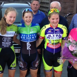 Luna Renders vloert het ganse peloton in massasprint in Veldegem