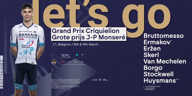 Team Bahrain Victorious zet zijn Belgische campagne voort met een gemotiveerde ploeg voor de Grand Prix Criquielion (8 maart) en de GP Jean-Pierre Monseré (9 maart). Na een veelbelovende prestatie in Le Samyn blijft het team zich richten op ontwikkeling, met een mix van WorldTour- en opleidingsrenners die waardevolle wedstrijdervaring willen opdoen op de Belgische wegen.