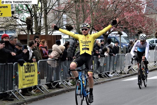 Thibau Verhofstadt heeft zijn eerste zege van het seizoen op zijn palmares staan. In Zele won de renner van het Tarteletto- Isorex de sprint van 4.