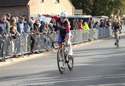 Al vroeg in de wedstrijd werd de koers opengebroken. “Halverwege de tweede ronde ben ik samen met Kobe Noreilde en Corneel Vanslembrouck kunnen wegrijden. Niet veel later sloot er nog iemand van DCR aan, maar die moest door krampen afhaken,” vertelde de winnaar.