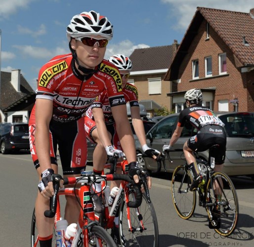 2. Is de overstap van junior naar belofte verlopen zoals je zelf vooropgesteld had? Wat was de moeilijkste aanpassing? De overstap van junior naar belofte kende een moeizame start tijdens de winter(trainings)periode. In de maand december werd ik in volle afdaling gegrepen door een auto die de weg opkwam. Gelukkig kwam ik er eigenlijk met de schrik vanaf niettegenstaande hersenschudding en spierinductie. Ik stond 5 weken aan de kant. Wanneer ik eindelijk terug de trainingen kon aanvatten werd de microbe mycoplasma in mijn bloed gevonden. Ik stond opnieuw 4 weken aan de kant. Door dit alles kon ik de competitie maar een maand later aanvatten. Maar ondertussen zijn we 3 maand verder en ben ik tevreden over mijn vormpeil. Ik kan en durf mee koers maken bij de beloften. Dit had ik zeker niet verwacht in mijn eerste jaar als belofte. Met 4 top 10 plaatsen, een 20ste plaats bij provinciaal kampioenschap en een 3de plaats mag ik niet klagen over mijn eerste koersjaar bij de beloften.